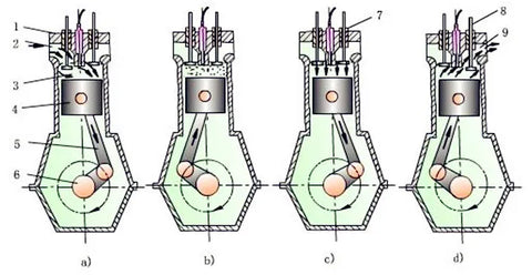 (2) Among the four strokes, only the power stroke generates power, and the other three strokes are auxiliary in preparation for the power stroke. Although the power stroke is the main stroke, the other three strokes are also indispensable.